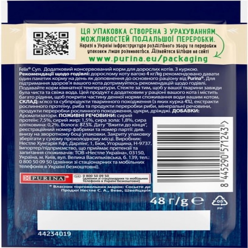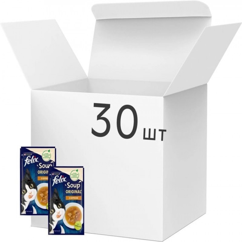 Упаковка додаткового консервованого корму для кішок Purina Felix Soup Суп з куркою 30 шт. по 48 г (7